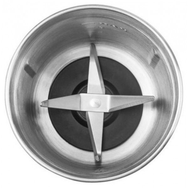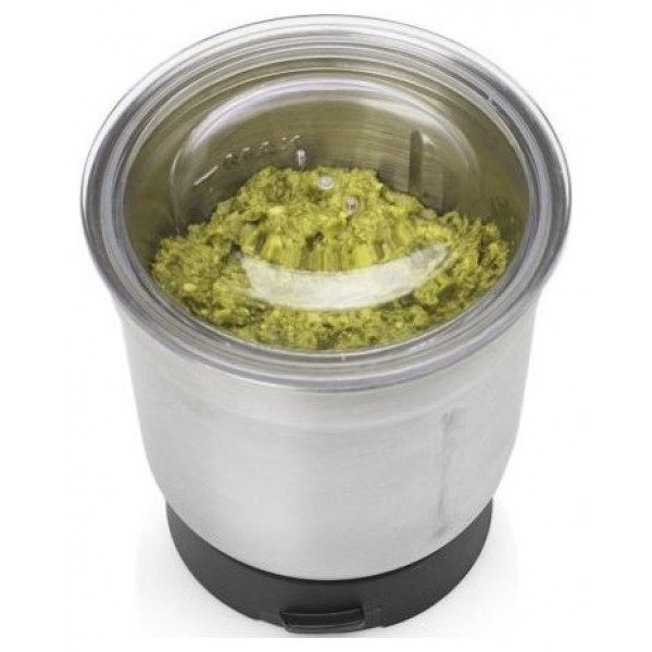 - Dos recipientes extraíbles en acero inoxidable: uno para picar ajo y hierbas frescas, y otro para moler granos de café y especias.