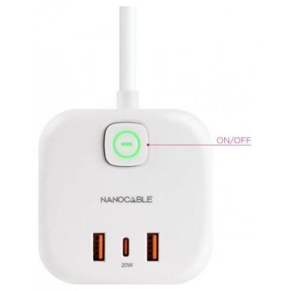 Base de 3 enchufes con 3 USB (2 USB-A + 1 USB-C), GaN + PPS, PD 20W, con interruptor, Blanco