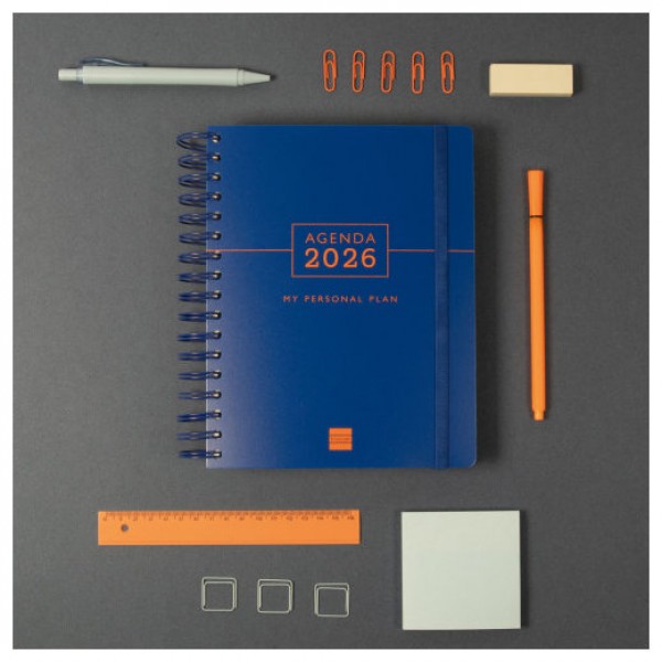 Agenda de tapa extradura de polipropileno, con espiral doble y goma elástica. Con dos cintas punto para poder acceder rápidamente a las secciones que desees. La agenda anual Tempus te ayudará a planificar tus metas, objetivos y compromisos, ya que está diseñada para facilitar la organización diaria del tiempo personal y de trabajo para adaptarse completamente a ti. Al inicio dispondrás de un apartado introductorio donde se detalla cómo usarla para sacarle el máximo partido un tutorial con recomendaciones útiles de organización personal. Cuenta con información de interés en la anualidad, muchos contenidos orientados a la planificación del tiempo y muchas hojas libres para que asignes los temas de tu interés. En el apartado de Descargas de la web Finocam podrás personalizarte tu agenda con contenidos especiales. Además, viene con listas microperforadas para arrancar, adhesivos temáticos, una funda y un set de notas engomadas. Da la bienvenida a tu nueva vida, mucho más tranquila, organizada y feliz, porque a pesar de vivir en la multitarea es importante priorizar las cosas y llegar a todo sin estrés. ¡Tu futuro depende de lo que hagas hoy! Formato similar a DIN A5 con las ventajas de una agenda portable y una de sobremesa. Duración: Enero 2026 - Diciembre 2026 (12 meses). Interior: 1 Día Página. Amplio espacio de escritura para cada día. Una columna para los compromisos asociados a una hora específica, y otra para asignar los objetivos que te hayas propuesto cumplir durante la jornada. Con información de los festivos de España. La anualidad de la agenda contiene: onomástica, festivos nacionales e internacionales, cambios de estación e inicios del nuevo año chino, musulmán, ortodoxo y hebreo. Con pestañas troquelada y espacio para notas en cada trimestre. Otros contenidos extra: datos personales, tutorial de My Personal Plan con consejos de organización, calendarios, festivos internacionales, códigos de países, fechas para recordar, horarios, planificación anual en columnas (2 años), planificación mensual cuadriculada (12 meses), hojas para anotaciones y tareas, listas microperforadas para arrancar, adhesivos temáticos, funda transparente y set de notas engomadas. Artículo en español con anualidad multilingüe: español, euskera, gallego y catalán. Formato: 4º - 155x217 mm. Tapas de polipropileno, espiral doble metálica y papel. 80 g/m². Papel FSC®.