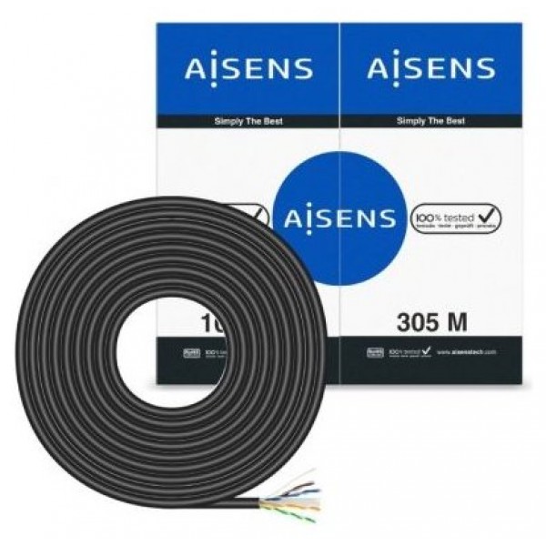 BOBINA CABLE RED AISENS EXTERIOR IMPERMEABLE RJ45 CAT.6 UTP 305M CCA RIGIDO