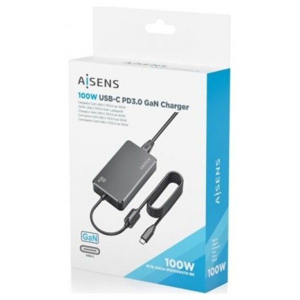 AISENS - CARGADOR DE SOBREMESA GaN 100W PD3.0 1XUSB-C 1.8M, NEGRO