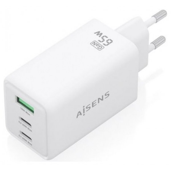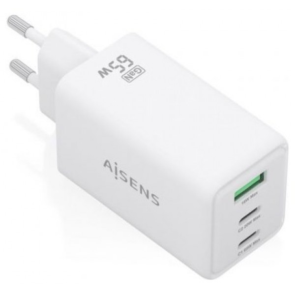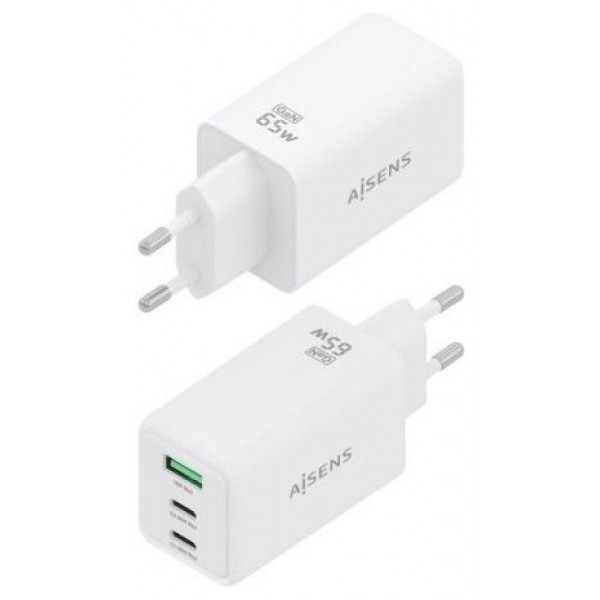 ASCH-65W3P072-W – Cargador GaN 65W, 2xUSB-C PD3.0 QC4.0, 1xUSB-A QC3.0, Blanco