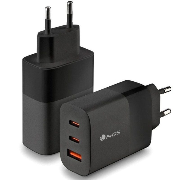 Cargador de pared con 2 salidas USB-C (PD & PPS) y una salida USB-A QC 3.0 de 65W de potencia máxima para cargar dispositivos de manera rápida y eficiente.. Fabricado en GaN y materiales ignífugos es el cargador ideal para smarphones, tablets y ordenadores portátiles.. Es un cargador inteligente que permitirá una carga más eficiente de la batería del dispositivo alargando la vida del mismo.. Su diseño con 3 puertos permite cargar 3 dispositivos simultáneamente de forma segura y estable minimizando el tiempo de espera. . Compatible con todos los móviles y dispositivos de carga USB.. Diseño compacto y portátil.. Potencia de entrada: 100-240V, 50/60Hz, 1,5A. Salida:. . USB-C1: PD 3.0. 5V-3A, 9V-3A, 12V-3A, 15V-3A, 20V-3.25A (65W Max.). PPS: 3.3-21V 3A (65W). USB-C2: 5V-3A, 9V-2.2A, 12V-1.67A (20W). USB-A: QC 3.0. 5V-3A, 9V-2A, 12V-1.5A (18W). USB-C1+USB-C2: PD 45W+20W. USB-C1+USB-A: 45W+18W. USB-C2+USB-A: 7.5W+7.5W. USB-C1+USB-C2+USB-A: 45W+7.5W+7.5W
