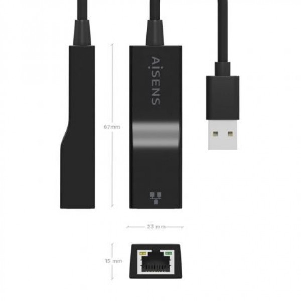 - AISENS - CONVERSOR USB 3.0 A ETHERNET GIGABIT 10/100/1000 MBPS, NEGRO, 15CM