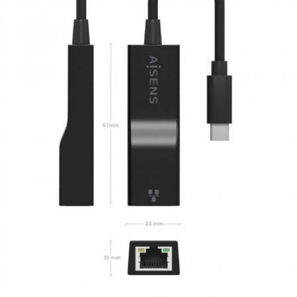 - AISENS - CONVERSOR USB3.1 GEN1 USB-C A ETHERNET GIGABIT 10/100/1000 MBPS, NEGRO, 11CM