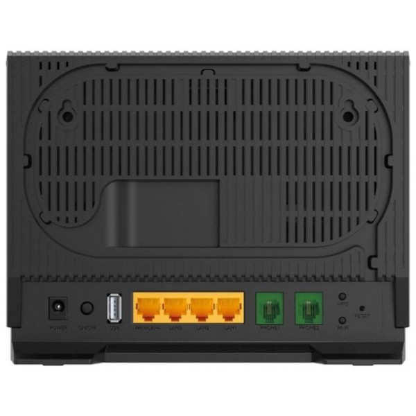 | Hardware | - Interfaz: 1 x puerto GPON 1 x puerto WAN/LAN Gigabit Ethernet 3 x puertos LAN Gigabit Ethernet 2 x puertos telefónicos 1 x puerto USB 2.0 - Botones WPS/Wi-Fi Button Reset Button Power On/Off Button - Fuente de Alimentación Externa: 12V/1.5A - Tasa de Transferencia: Downstream Speeds: 2.488 Gbps (GPON) Upstream Speeds: 1.244 Gbps (GPON)‡ - Antenas: 2 × External Dual-Band Antennas + 1× Internal 5G Antenna |