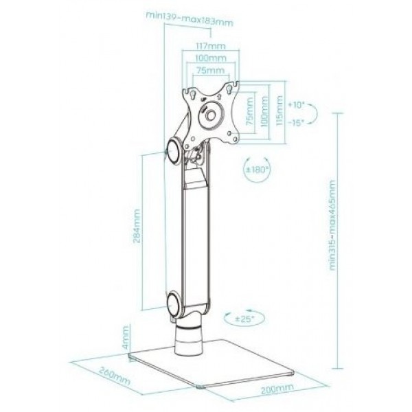 SOPORTE TECHO DTI LCD-1530 ORIENTACION VERTI. +-20º GIRO 190º VESA 50/ 75/ 100/ 200 10-30 MAX 20KG ..