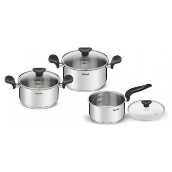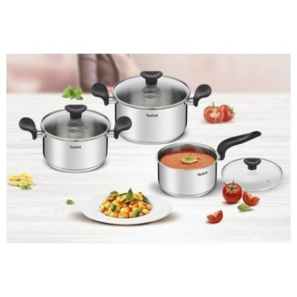 Batería de Cocina Tefal E308S674 Apto para lavavajillas, Plateado, Acero inoxidable