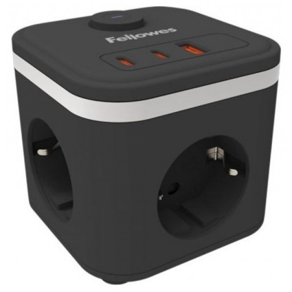 - Su forma cúbica reduce la acumulación de enchufes y deja más espacio para los dispositivos.
