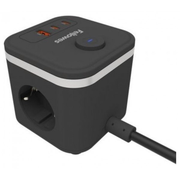 - Incluye 3 tomas de corriente (230 V), 1 puerto USB A (18 W máx.), 2 puertos USB C (20 W máx.) y un interruptor de encendido/apagado.
