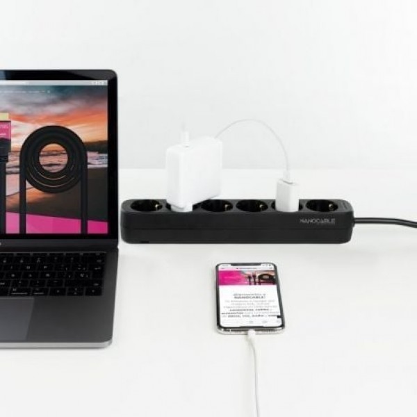 Regleta con 6 tomas de corriente con protección contra sobretensiones einterruptores individuales.Pr..