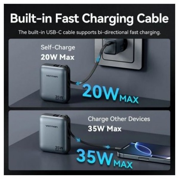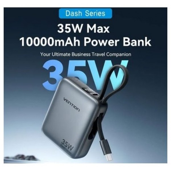 Powerbank 10000mAh Vention FKAN0-C/ 22.5W/ GrisVention 10000mAh Power Bank 22.5W10000 mAh 22,5 WCabl..