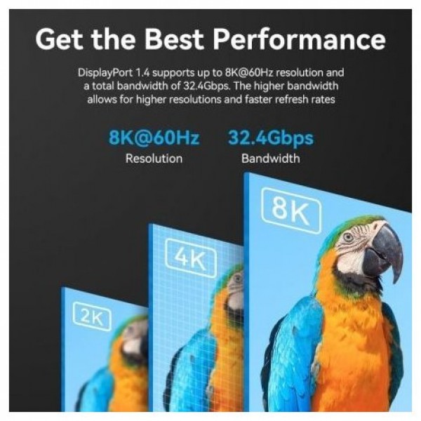 - Resolución 8K 60Hz, 4K 144Hz/120Hz, 2K 240Hz/165
