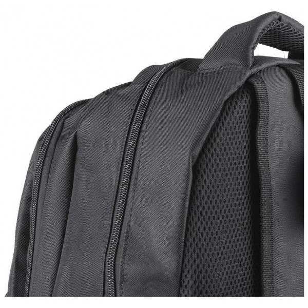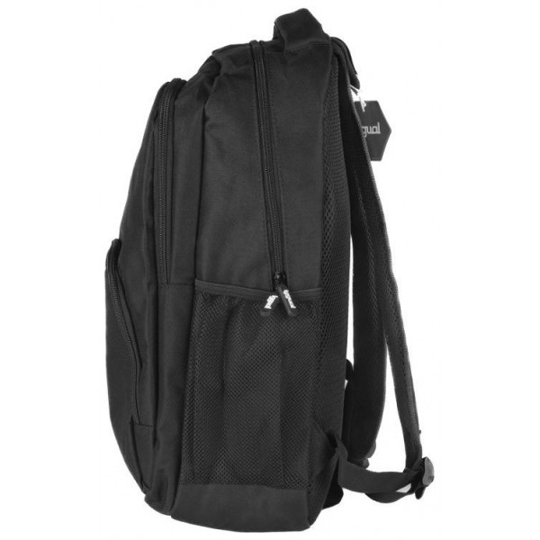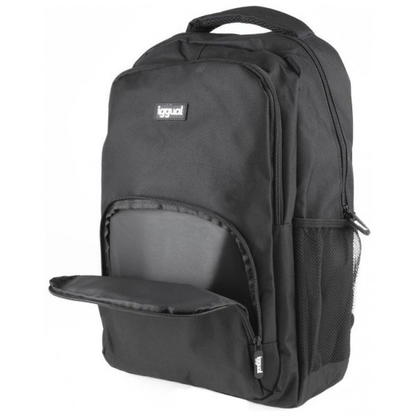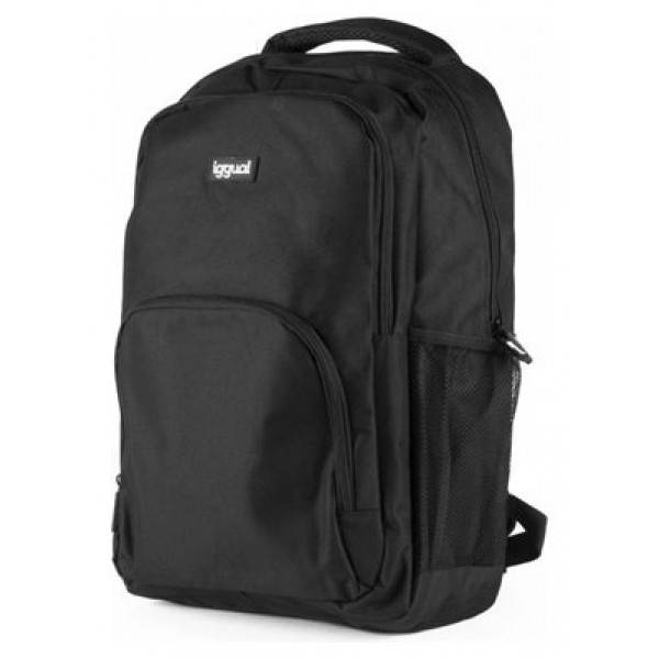 Características | - Portátil de hasta 15,6" - Dos compartimentos separados - Bolsillo exterior frontal - Bolsillos laterales de rejilla - Material exterior: tela de poliéster Oxford - Resistente a salpicaduras - Material interior: poliéster - Color interior: negro - Color exterior: negro - Medidas: 47 alto x 32 ancho x 14,5 profundo cm - Peso: 580 g |
