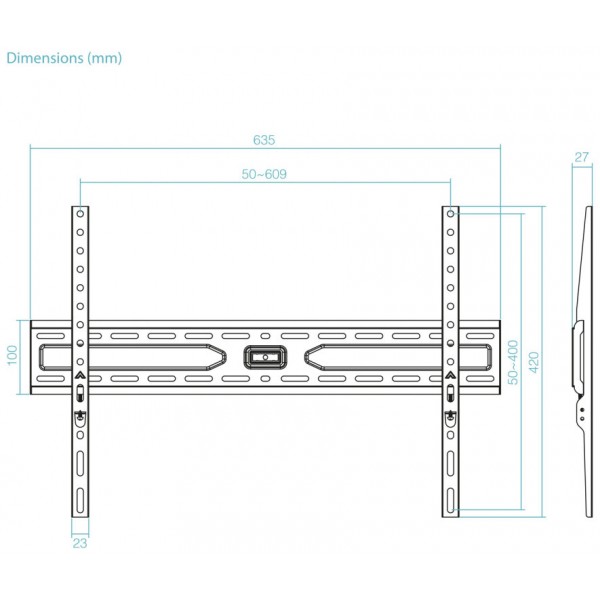 - Compatible con VESA: 50x50, 75x75, 100x100, 100x150, 150x100, 100x200, 200x100, 150x150, 200x200, 200x300x, 300x200, 200x400x, 400x200, 300x300, 300x400, 400x300, 600x200, 500x300, 400x400, 600x300, 500x400, 600x400