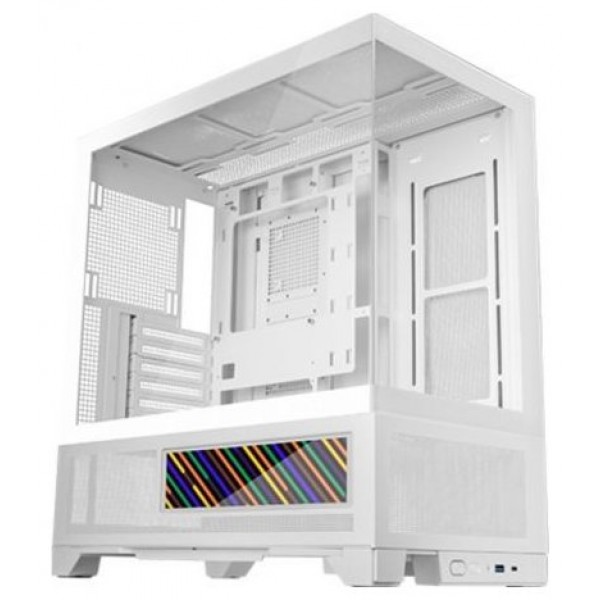 El panel inferior FULL MESH maximiza la refrigeración desde la base del equipo, optimizando el flujo interno y mejorando la eficiencia térmica de tu configuración. Un diseño pensado para reforzar la ventilación sin sacrificar la estética moderna de la caja.