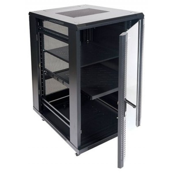 Características | - Altura: 22U - Puerta: Cristal - Tratamiento: desengrasado, limpiado con ácido y pintura fosfórica anti-óxido. - Grado de Protección: IP20 (protección contra la entrada de polvo). - Capacidad de carga: 800 Kg. (sobre pies) | 400 Kg (sobre ruedas). - Material: Acero SPCC laminado en frío. - Grosor de acero: Carriles 2.0 mm. | ángulos 1,5 mm. resto 1,2 mm. - Color: Negro RAL 9004, acabado liso. - Dimensiones: 600x800x1166 - Peso: 73kg Accesorios - 2 bandeja fijas. - 4 ruedas con freno. - 4 ventiladores de techo de 120 mm. - 1 base de enchufes de 8 tomas Schucko con interruptor. - Tornillería de montaje, pies regulables en altura y juego de llaves para cerraduras. |