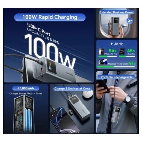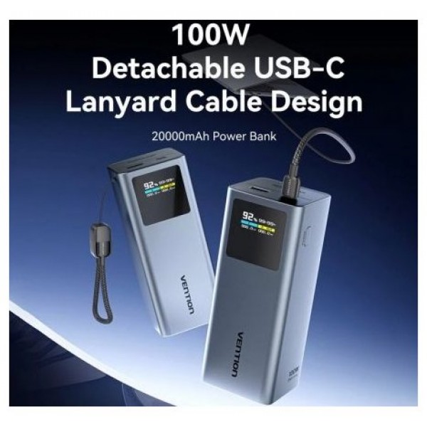20000mAh Power Bank (USB-C + USB-C/USB-A) 100W Gray TFT Display Type