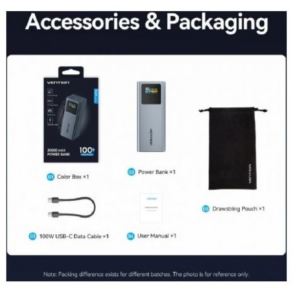 Powerbank 20000mAh Vention FKBL0-C/ 22.5W/ Azul/ Incluye Cable USB Tipo-CCompacto y portátilPower Ba..