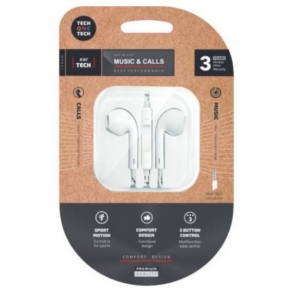 - Auriculares earTECH ergonómicos, sonido estéreo, con micrófono, controles de volumen y tercer botón multifunción.