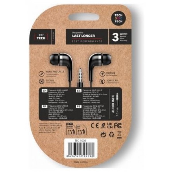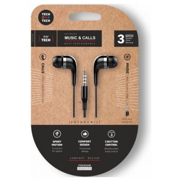 Auriculares soft earTECH ergonómicos, sonido estéreo, con micrófono, controles de volumen y tercer botón multifunción.