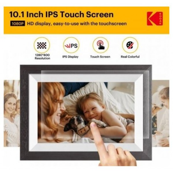Marco de fotos digital WiFi Kodak de 10 pulgadas, pantalla táctil IPS HD de 800*1280 fácil de usar con memoria de 32 GB, garantía de un año, álbum electrónico con todas las funciones.