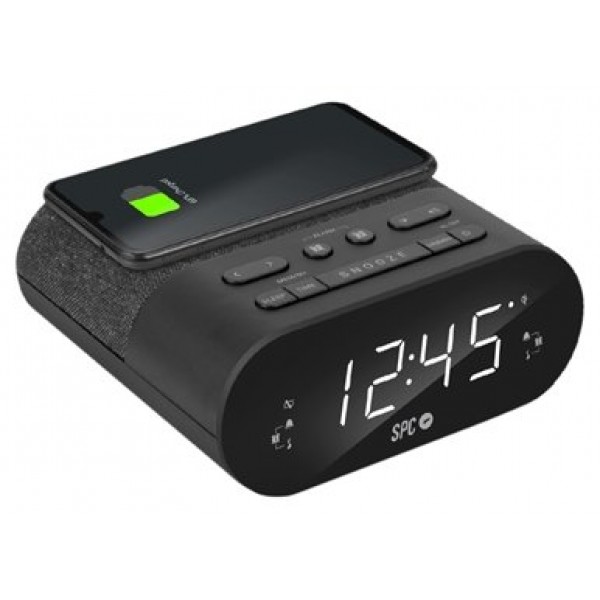 | Características | - Radio despertador LED con brillo regulable. - Base de carga inalámbrica. - Simplemente coloca el teléfono en la parte superior del dispositivo. - Almacena emisoras de radio. - Dos alarmas configurables. - Puerto de carga USB para cargar iPhone o Smartphone. - Despertador con buzzer o radio. - Pila CR 2032 para respaldo de datos incluído. Dimensiones y peso - Dimensiones: 140 x 58 x 135 mm. - Peso: 391 g. Contenido - SPC Frodi Qi Radio FM - Cable de alimentación - Batería de reserva (1 x 3V CR2032) - Guía rápida. |