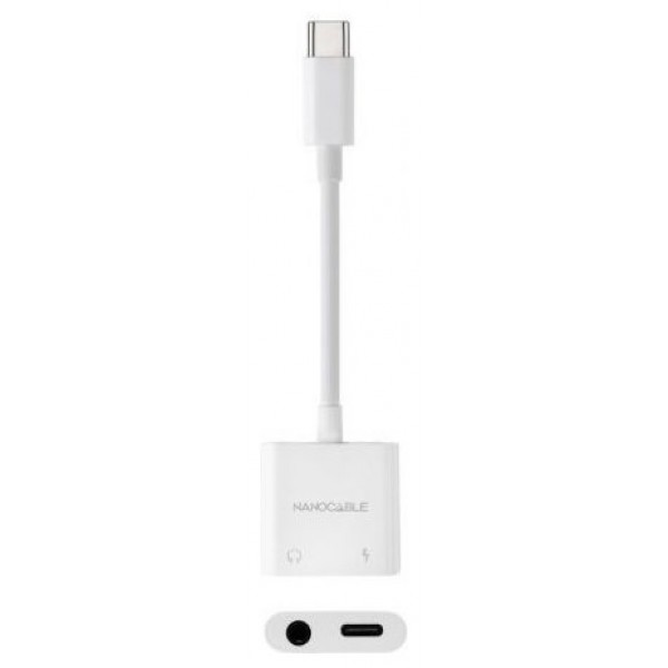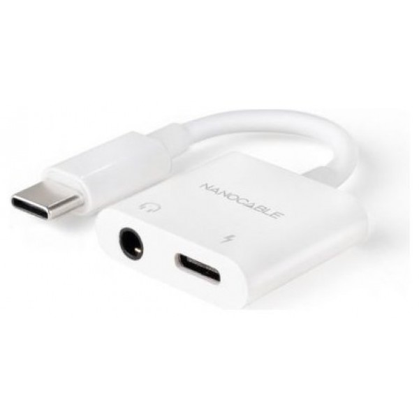 NANOCABLE CABLE ADAPTADOR USB-C A JACK+USB-C/H PD 60W,BLANCO
