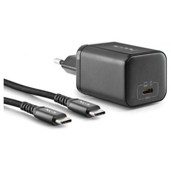 CARGADOR GAN DE PARED ULTRARÁPIDO DE 65W CON SALIDA TIPO USB-C y CABLE USB-C A USB-C DE 1,5 M