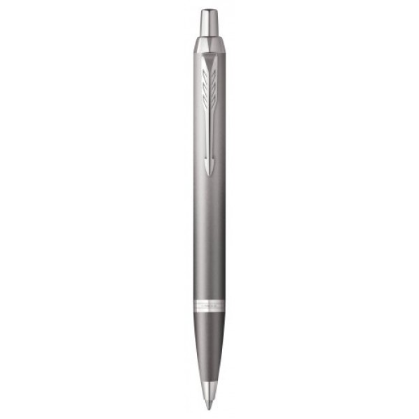 Bolígrafo Parker IM Writing Rituals, acabado gris con degradado, adornos cromados, punta media, tinta azul, estuche de regalo.