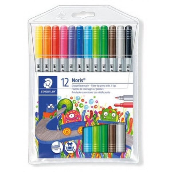 STAEDTLER® ROTULADOR DOBLE PUNTA 3200 - Rotuladores de doble punta de fibra, con puntas resistentes a la presión. Perfectos para esbozar, dibujar, ilustrar, escribir y colorear. Anchos de línea entre aprox. 3,0 mm y 0,5-0,8 mm. Estuche de cartón con 12 rotuladores, colores surtidos.