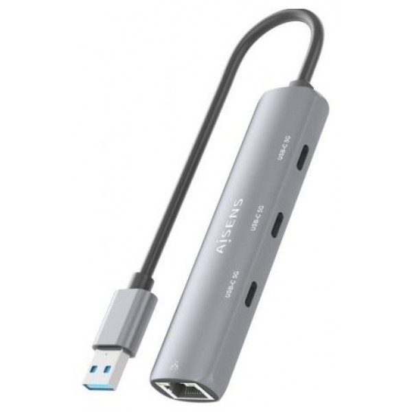 ASUC-4P037-GR – USB3.0 Dock USB-A a Ethernet Gigabit + HUB 3xUSB-C, Gris, 15cm