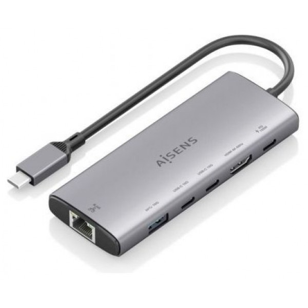 AISENS – USB-C DOCK 6 en 1, USB-C a 1xHDMI, 1xRJ45, 1xUSB-A 10G, 2xUSB-C 10G, 1xUSB-C PD, Gris, 20CM