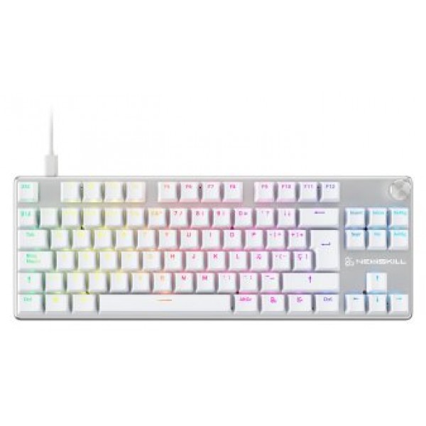 NEWSKILL TECLADO MECANICO GAMING SERIKE TKL V2. RGB. CHASIS DE ALUMINIO. TECLAS Y SWITCHES PERSONALIZABLES. NEWSWITCH LINEAL RED. RUEDA VOLUMEN. BLANCO