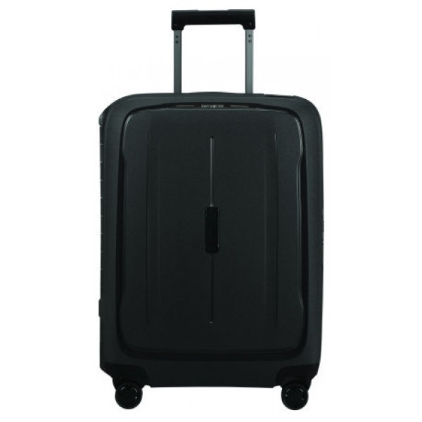 Maleta sostenible de cabina Essens de Samsonite, de 55 cm con 4 ruedas color grafito. Rígida. Fabricada con polipropileno reciclado post consumo, usando tecnología Recyclex™. Elaborada con el equivalente a 230 vasitos de yogur. Seguridad reforzada, sistema de bloqueo de 3 puntos con cerradura TSA. Tirador de doble tubo. Muy ligera. Volumen 39 litros. Peso 2,8 Kg. Garantía mundial: 5 años. Medidas exteriores: 20x40x55 cm.