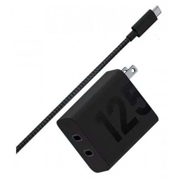 | Características | - Tipo de producto: Cargador de pared USB-C 125W - Puertos: 2x USB-C - Potencia máxima: 125W (120W en puerto dual) - Entrada: 100V - 240V - Corriente: 6.5A - Tecnología: GaN, TurboPower™ Sense, TurboPower™ Shield - Longitud del cable: 2 metros (USB-C a USB-C trenzado) - Color: Negro mate - Dimensiones: 64 x 56 x 29 mm - Peso: 175 g - Incluye: Cargador y cable USB-C a USB-C de 2 metros |