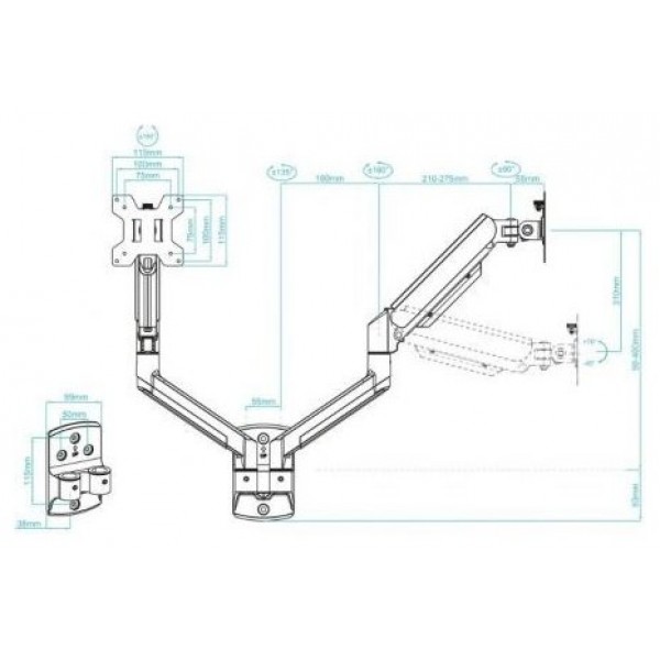 AJUSTABLE WALL DISPLAY MOUNTING ARM UP TO 27"? 7 KG GEMBIRD