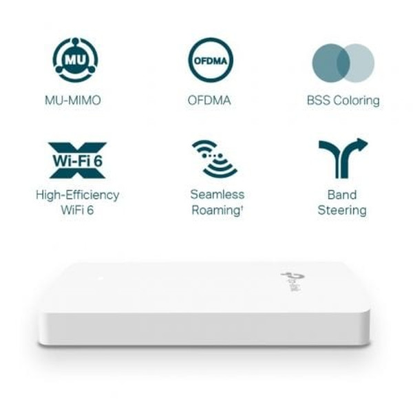 Especificaciones:. . CARACTERíSTICAS DE HARDWARE. . Interfaz:. Enlace ascendente: 1 puerto Ethernet de 10/100/1000 Mbps. Enlace descendente: 3 puertos Ethernet 10/100/1000 Mbps (un puerto admite PoE OUT. La función PoE OUT requiere entrada PoE + 802.3at. La salida de potencia máxima para el paso de POE es 13 W (versión UE) o 12 W ( Versión de EE. UU.), Basado en pruebas de laboratorio).. Bloqueo de Seguridad FísicoSi. BotonesReset. Fuente de Alimentación802.3af/at PoE. Consumo de PotenciaUE: 10 W (802.3at PoE, salida PoE apagada). EE. UU.: 11,5 W (802.3at PoE, salida PoE desactivada). Dimensions143 x 86 x 20 mm (5.6 x 3.4 x 0.8 in). Antenas. 2 antenas de doble banda. 2,4 GHz: 2 x 3 dBi. 5 GHz: 2 x 4 dBi. MontajeMontaje en placa de pared. . CARACTERíSTICAS INALáMBRICAS. . Estándares InalámbricosIEEE 802.11ax/ac/n/g/b/a. Frecuencia2.4 GHz y 5 GHz. Tasa de Señal• 5 GHz: Hasta 1201 Mbps. • 2.4 GHz: Hasta 574 Mbps. Funciones Inalámbricas:. 16 SSID (hasta 8 SSID en cada banda). Activar / desactivar radio inalámbrica. Asignación automática de canales. Control de potencia de transmisión (ajuste la potencia de transmisión en dBm). QoS (WMM). Roaming sin interrupciones †. Formación de haz. MU-MIMO. Límite de tarifa. Equilibrio de carga. Equidad de tiempo aire. Dirección de banda. Programa de reinicio. Horario inalámbrico. Contabilidad RADIUS. Autenticación MAC. Estadísticas Inalámbricas. IP estática / IP dinámica. Seguridad Inalámbrica:. Autenticación de portal cautivo. Control de acceso. Filtrado de Direcciones MAC Inalámbricas. Aislamiento inalámbrico entre clientes. VLAN. Detección de puntos de acceso no autorizados. Soporte 802.1X. WPA-Personal / Enterprise, WPA2-Personal / Enterprise, WPA3-Personal / Enterprise. Potencia de Transmisión:. CE:. < 20 dBm (2.4 GHz, EIRP). < 23 dBm (5 GHz, EIRP). FCC:. < 21 dBm (2.4 GHz). < 21 dBm (5 GHz). . GESTIóN. . Omada AppSi. Centralized Management:. Controlador hardware Omada (OC300). Controlador hardware Omada (OC200). Controlador software Omada. Cloud AccessSí (a través del controlador de software OC300, OC200 o Omada). Alertas por Correo ElectrónicoSi. LED de control ON / OFFSi. Control de Gestión de Acceso MACSi. SNMPv1, v2c, v3. Acceso al Registro de Sistema Local/ Registro del Sistema RemotoSyslog local / remoto. SSHSi. Gestión basada en WebHTTP/HTTPS. Gestión L3Si. Gestión Multi-sitioSi. VLAN de GestiónSi. . OTROS. . CertificacionesCE, FCC, RoHS. Requisitos del sistemaMicrosoft Windows XP, Vista, Windows 7, Windows 8, Windows10. Factores Ambientales:. Temperatura de funcionamiento: 0-40 (32-104 ). Temperatura de almacenamiento: -40-70 (-40-158 ). Humedad de funcionamiento: 10 a 90% de humedad relativa sin condensación. Humedad de almacenamiento: 5-90% de humedad relativa sin condensación