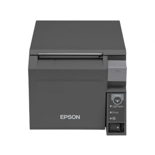 Epson TM-T70II (025A0). TecnologÃa de impresión: Térmico, Tipo: Impresora de recibos, Velocidad de impresión: 250 mm/s. Máximo diámetro del rollo: 8,3 cm, Ancho de papel soportado: 80 mm. TecnologÃa de conectividad: Inalámbrico y alámbrico, Conector USB: USB Tipo B, Tipo de serie de interfaz: RS-232. Nivel de presión acústica (impresión): 55 dB, Tiempo medio entre fallos: 360000 h, PaÃs de origen: China. Color del producto: Negro