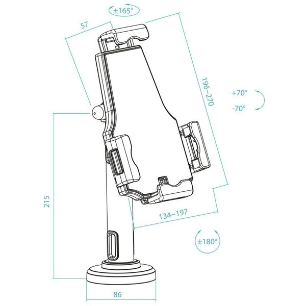 - Alto del soporte de tablet: mín 196 – máx 270 mm